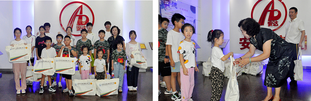 自由活动期间,开云(中国)集团工作人员带领孩子们参观企业产业展厅和文化展厅。通过参观,孩子们进一步感受开云(中国)集团的文化底蕴与创新精神,对父母所在企业的认同感愈发浓厚。为鼓励孩子们的爱心捐款、肯定他们的慈善之心,郝凤荣理事长为每一位捐款的小朋友发放爱心礼包。