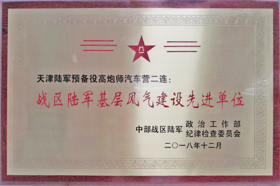 同时,为表彰预备役高炮师汽车营二连日常刻苦训练,严肃风纪,积极承当各项任务。中部战区陆军政治工作部、纪律检查委员会,特授予天津陆军预备役汽车营二连“战区陆军基层风气建设先进单位”称号。